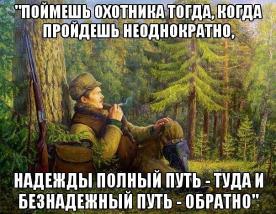 Охотника поймёшь тогда, когда пройдёшь неоднократно надежды полный путь туда и горемычный путь обратно...