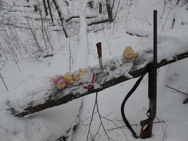 Ездили сегодня. Утром по дороге в угодья-видим метет, но решили проехаться. Кое как пробившись и не найдя следов решили возвращаться,но как это бывает, все-таки заскочили в тихий уголок, где ветра всегда меньше. В итоге нашли след, стали тропить, но заяц перешел дорогу, а там перемело. Немного поискали и прикинув по географии где он может быть разошлись с товарищем проверять. Минут через пять слышу: раз, два, три!!! Третьим выстрелом напарник сразил косого. В 8.50 охота была окончена. Собрались и поехали восвояси, но ближе к дому дернул черт нас заехать еще в один овражек и хоть надежды не было (тем более поблизости завелся очень активный снегоходчик, который вчера забрал зайку раньше нас) поехали искать. Нашли!!! Потропив- я таки вычислил направление, вышел по следу, сдвойка! Вторая! И.... пустая, но теплая после зайки лежка. Слежку ушел в густые, непролазные заросли... 1:1.
