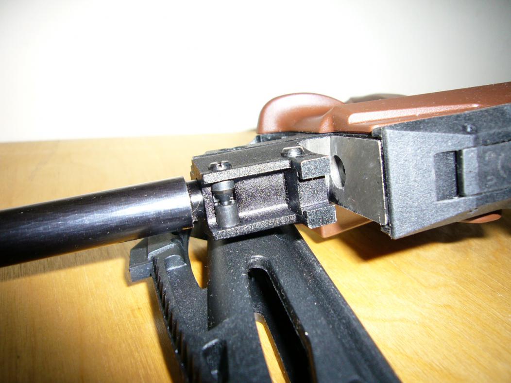 А, ствол теперь как крепится в рамке? Надеюсь, не пластиковым кожухом поджимается?