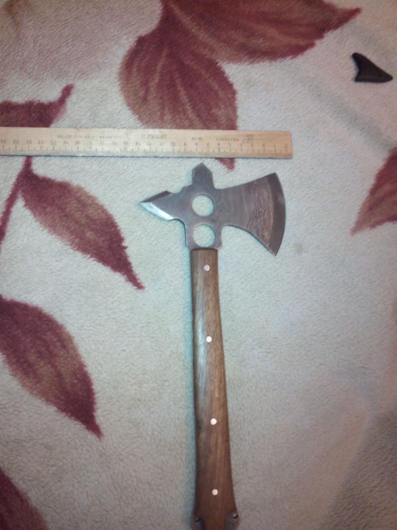 Ну посмотри, мне кажется, что рисунок травленый.Это не плохо, главно, что б не пластилин сталь была. А такие томагавки на " али" и " ибеях" продают. И формы топорика не восточные.