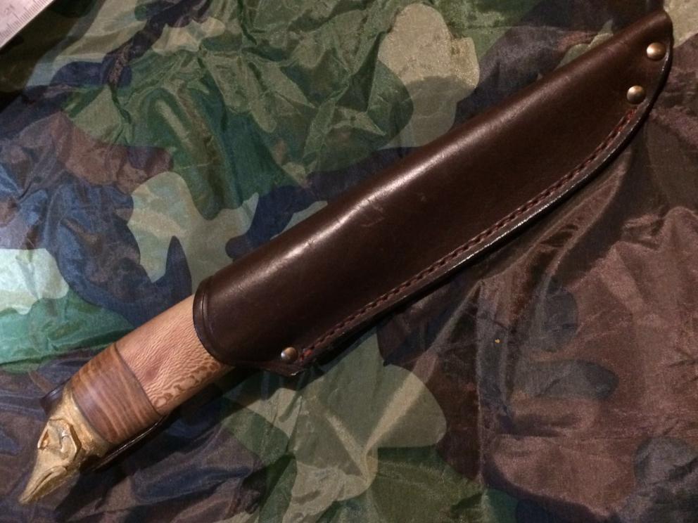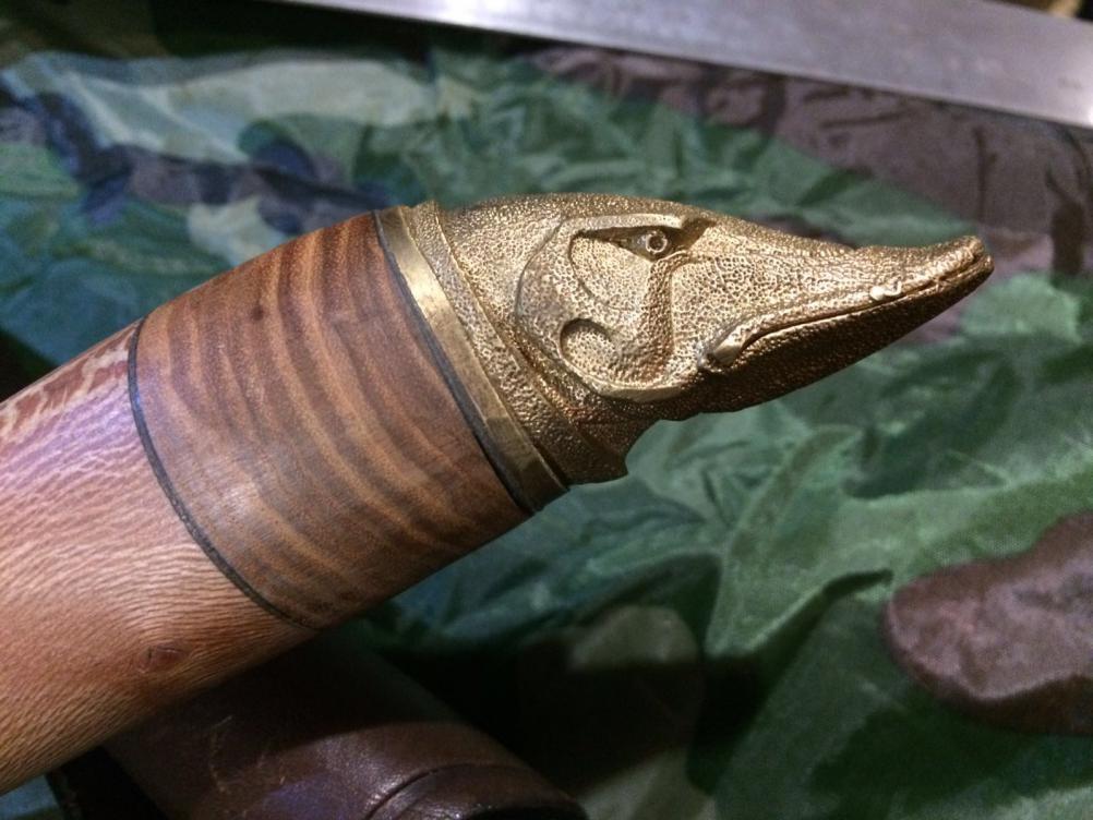 Лот 1 нож моего изготовления. Единственный экземпляр, ручная работа.клинок кованая сталь Х12МФ, клики этой партии бились честных 61Ровелл. рукоятка кавказский платан+жабры акация. литье щука латунь. Всадной монтаж. Финские ножны темно коричневого цвета, сидит в них как для него и делали. При хвате за голову щуки баланс таков что можно и потопорить. В лучших традициях девственности не точился! Вы будете первым) если кому это не важно могу заточить. Отдам за 2500.. Чудный подарок на 23. Клин 130мм, общая длина 29,5. обух 5мм!