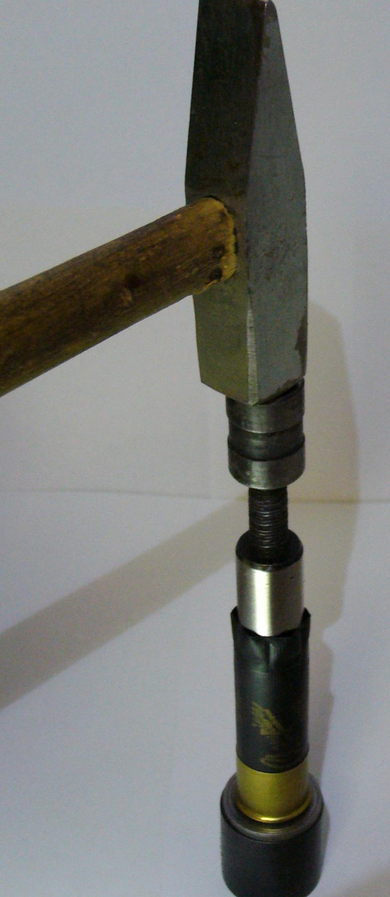 Но чертежи корректора нажимного действия, который устанавливается на станок, у меня имеется. И им можно пользоваться как нажимным, установив на сверлильный станок, и как просто ударным, сакрепив "пятку".