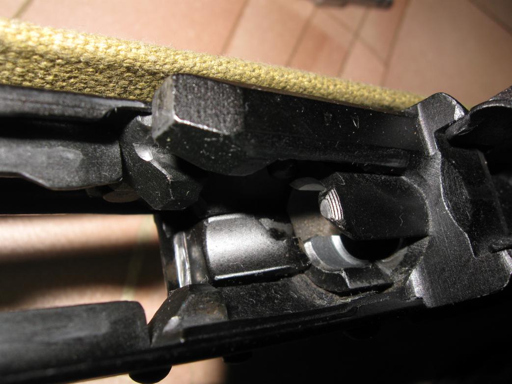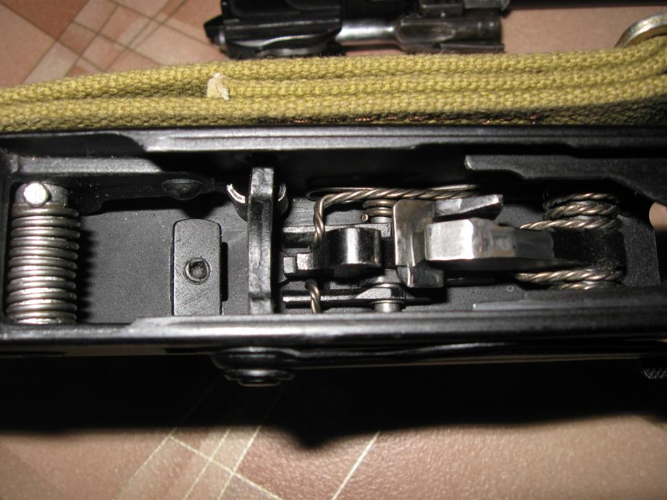 Установлена ребристая крышка от АК-74 с возвратной пружиной, переходник под магазины АК-74, прицельная планка на 1000 м, кастомный ДТК.