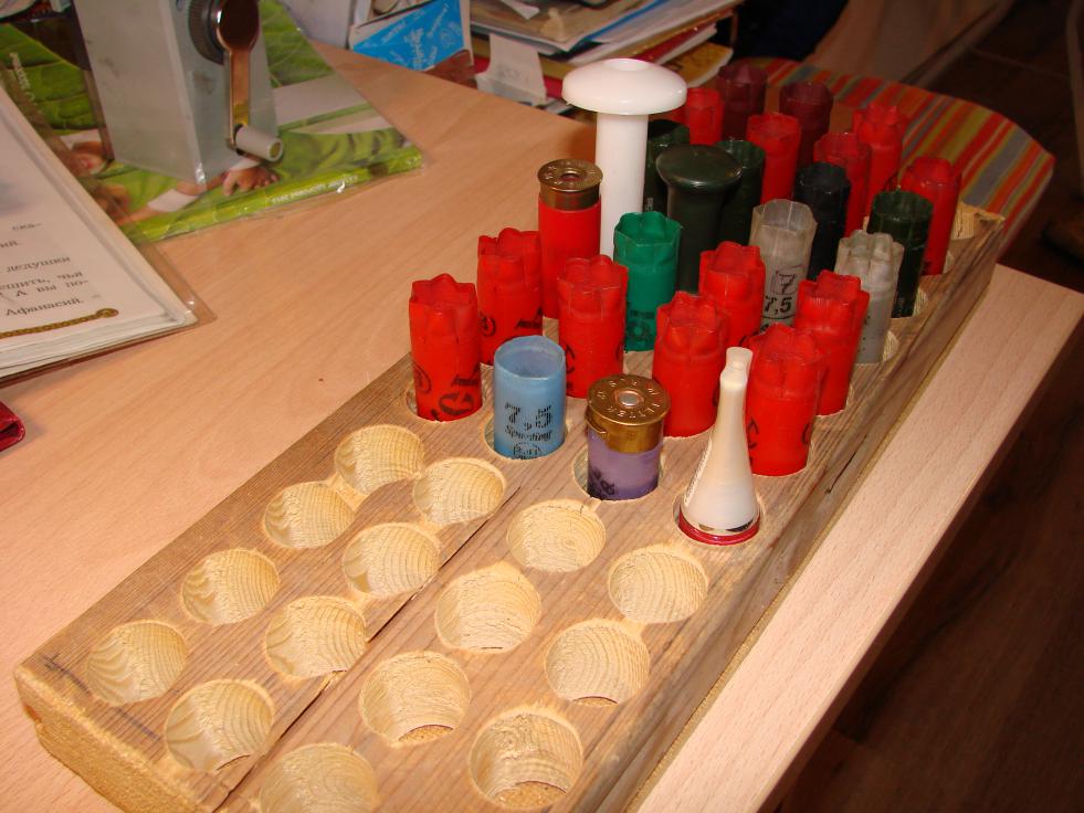 Принцип в том ,что когда заряжаешь патроны ,ничего не падает ,позволяет выполнять однотипные операции ,не отвлекаясь на то ,например ,что незавальцованные гильзы с дробью могут упасть и просыпаться.