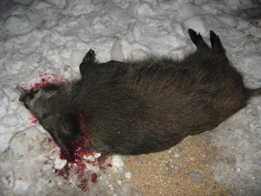 Продолжаю выполнять продовольственную программу к НГ. Результат вчерашней засидки: сеголеток, 50-60 кг, один выстрел в ухо, дистанция 50 м, 338 WM, вышел в 17.00.