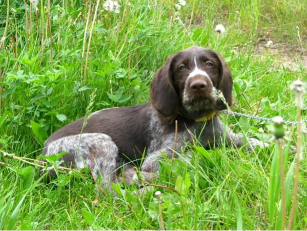 А вот мой, почти 4 месяца ему, кормлю педигри для щенков. В поле занимаемся с 3-х месяцев. К сезону хотя бы на утку пойдет надеюсь