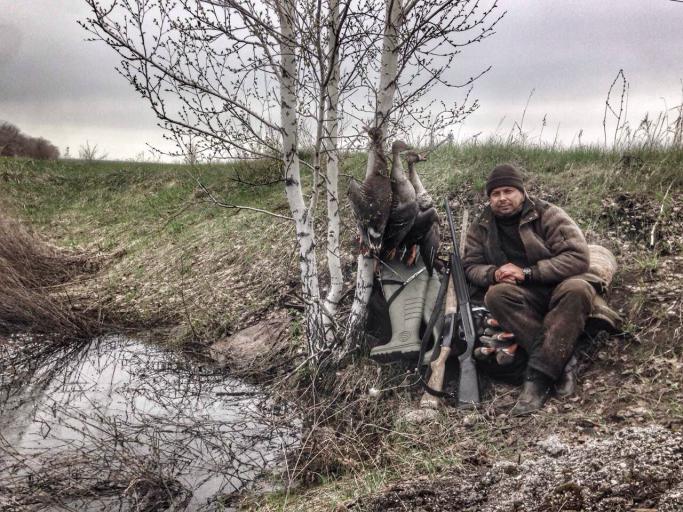 Как говорят, дурная голова ногам покоя не даёт. Умчались позавчера в Сорочинский район, в догонялки за гусем. Вечером поиски, разведка, профиля и по 50 боевых. Таких бы полей побольше, кукурузу не убирали, а просто прубили по ходу ))) В 4-30, преодолев пешком примерно 3 км уже на местах. Слепили подранка по темному, протянул с километр, поиски по колено в грязи успехом не увенчались. 6-00, светло, гусями не пахнет. В бинокль разглядел лису, в той части поля, где теоретически может быть подранок. Подумал, а вдруг природный легаш чем нить и поможет )) Через 10 мин наблюдений за лисой увидел, что от неё яростно отбивается гусь. Т.к. Намёка даже на налеты гуся не было, было принято решение отбирать у лисы нашего подранка, а когда подошел ближе, то понял, что спасать надо лису, тот ей пилюлей раздавал на раз-два )) короче погоня с 1,5 км по кукурузной жиже. Подранок добран живым, иду в сторону наших засидок. И в этот самый момент, как немцы на Москву, на поле прет тысячи полторы гуся))) я с живым подранком оказываюсь посреди поля, в самый неподходящий момент)))лечь нельзя - жижа, стоять палево, гуси меня матерят сверху, товарищи матерят в стороне)))) заметив очередную партию принимаю решение лечь в лешем посреди поля в сыру землю )))) Подранок под голову. Гуси ближе, подранок сматывается из под меня, лежу не двигаюсь))) гуси на выстрел не налетают, подранок уже метрах в трехстах))) опять погоня))) догнал. Короче, за утрянку не повезло двум белолобам-монстрам (реально первый раз таких больших и жирных видел) и одному гумяшу, который все таки был бит мной, пока я добирался с подранком до засидки, и оказался очень кстати к пасхе))))