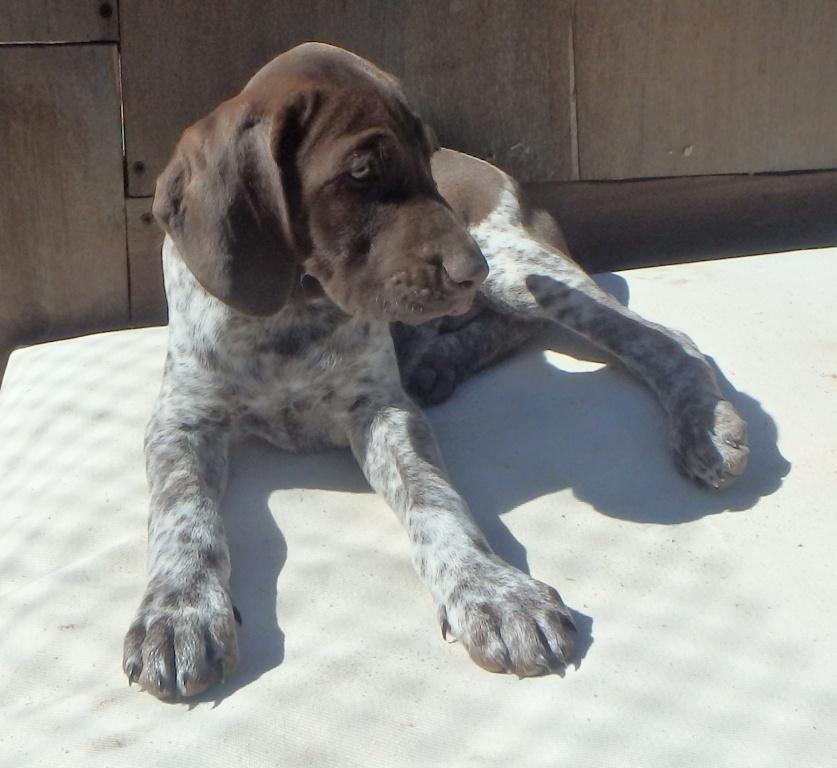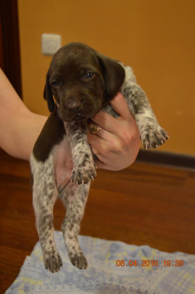 Щенки начали разъезжаться по новым домам, свободны две пегих суки и кобель.