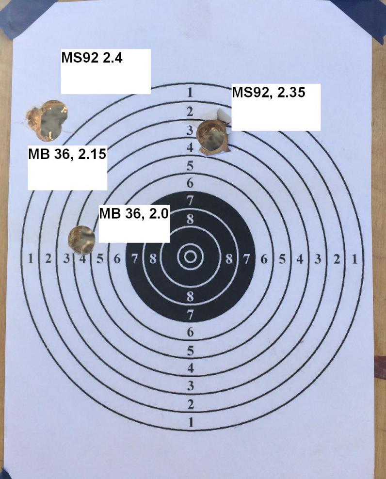Ну здравствуйте. Итак, пуля Рубейкина: Отстрел произведен. Сказать, что доволен - ни чего не сказать...))) Результаты впечатлили и могу заявить, что для моей М2 пуля найдена, хоть с контейнером и придется подумать... (есть варианты). Снаряжал 10 пуль, но стрелять все не стал, оставил на предстоящую охоту. Стрельба велась с рук (максимально к условиям охоты). Ружье Бенелли М2. Сужение цилиндр и теперь подумаю как отстрелять с 0,25. Патроны собраны на порохах МS92 и МВ36. Рецепт следующий Капсуль СХ2000, Гильза Чедит, Порох МВ36, MS92 (весовка на фото), абтюратор от ПК, Пробка 4+6, прокладка картон, пуля Рубейкина. Пули все целые после выстрела, хоть еще раз снаряжай. Дистанция 50 метров!