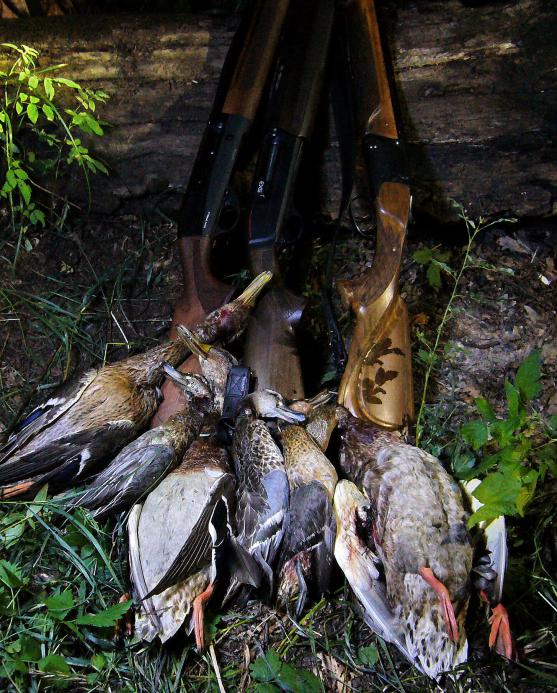 Конечно же утка была. Порадовали налеты и красивые дуплеты, охотил с переломкой.