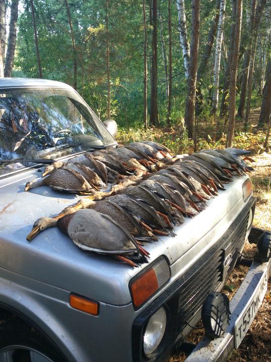 Вчера, наконец-то!, открылся!!! Ездил с сыном. Залезли в самые ебеня! Туда шли: то мы на лодке, то лодка на нас. При подходе к месту подняли разной утвы около СТА-СТАПЯТИДЕСЯТИ ГОЛОВ!!! Есть просто непуганые!Идем на веслах - пара в метрах 60 плавают и на нас ноль с презрением!Кулика много. Все, что мы расшугали, вскоре начали возвращаться. Причем, подняв всю эту братию, мы с сынищей и другим в округе праздник устроили. Короче, думал планка отпаяется... Но навык то подрастерял: в этом году ни разу на стенд, а в том всего лишь пару выездов. Мазал сначала так, что сын ржать начал. Столько летело, что даже осенью в пролет не видел столько. Выстрелил только 2/3 налетов, остальное прощелкал. Ибо мой молодой охотник не умолкая засыпал меня вопросами. И даже намек, что если папу отвлекать, то можно получить прикладом по хребту, не дал результата. А уть летел и по светлому и по темному. Кряквы крайне мало, преобладали чирки и свиязи. Итог вечерки: 1 серая, 4 свиязи, 1 чирок. Не судите за перестрел - вроде считал 5, собрали 6. Сын сказал:-Завтра не более 4-х. План на утрянку был проверить утренний лет и поохотить куликов, испробовать на него новый патрон Феттер №9 24гр. С утра по темному чай на костер, бужу сына, а тот в отказ - спать хочу. Одного не стал оставлять, пожертвовал куликами. Теперь... Три свиязи были полностью в зимнем наряде без костышей! Причем стенки желудков у них были иссиня-черно-фиолетовые, как от черники. Есть мысль, что не местные... Так как четвертая свиязь была с костышами, желудок зеленый с ряской. Кстати, у нее грудке обнаружил инородные врапления, типа мелких глистов. Утю утилизировал. Серая тож еще не перелиняла, в костышах, а чирок чистый.Все стрелял спортингом 7,5, если попал - без вариантов. Чучела не ставил, только дудки. Вот такое у мну открытие сезона 2016 по перу. З.Ы. Парни! Не ешьте бакланов! ИЩИТЕ уток! Они есть. ![]() За фото сорри - телефон гамно.