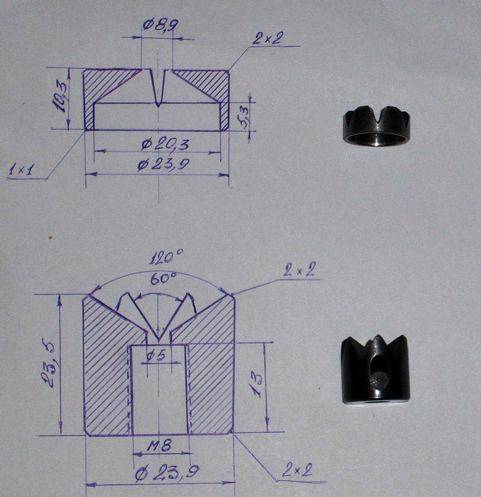 Поэтапная сборка нарезающей матрицы Гаеп. И вид изготовленной самостойно "рубашки", под Гаеповскую нарезку, с наминами для попадания лучей по старым наметкам.