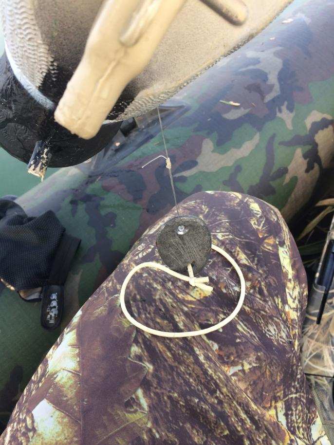 У меня чучело Фламбо. К килю толстая леска 0,8-1 - метров 5, к леске грузило (ложка) свинцовая с двумя отверстиями, с другой стороны грузила резинка рыболовная, ну ооочень хорошо и держится и хранится и транспортируется... Заехал на болото, отмотал 40 см, за крючек киля зацепил, на Волге - 4 метра и т.д