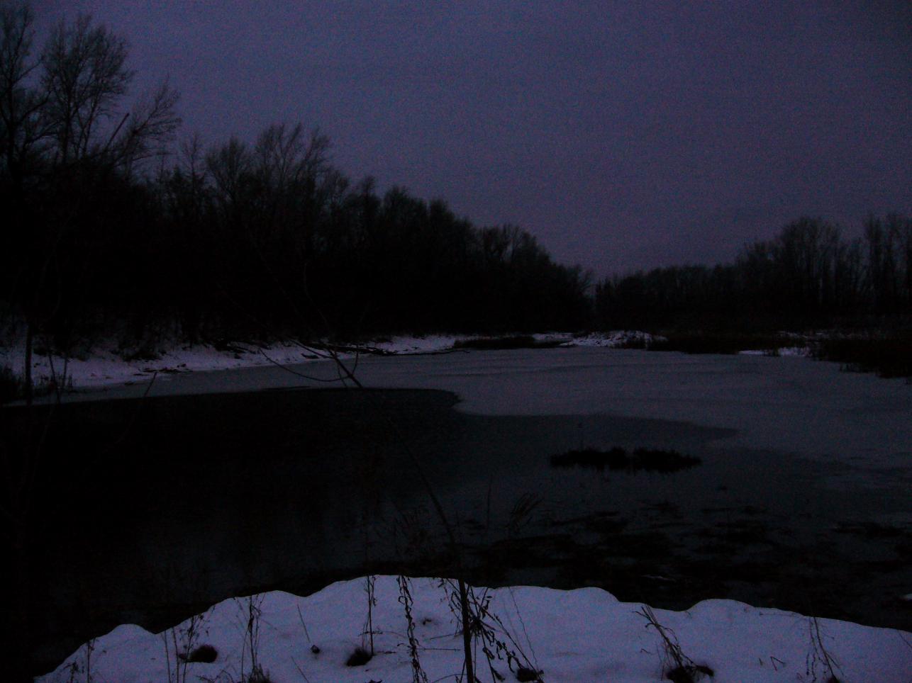 В основном баклуши забиты снегом со льдом, но на некоторых "окна" имеются... Лет был средний, но вечерка впечатлила своей красотой и не обыденностью! Красиво конечно, когда битая полновесная утка падает на снег!... Ну и как то так...))) |