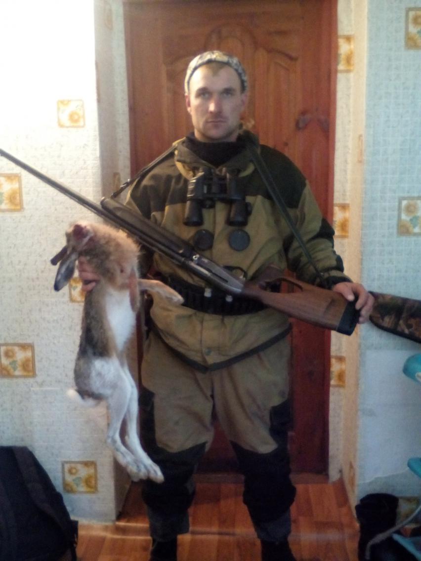 Но результат есть. Расписывать долго не буду. Первый лежал в посадке. Я стоял на номере в прогале, а он лежал за спиной метрах в 20-30. Уж когда пошли к машине, поднялся и на другую сторону выскочил на брата. Второго поднял выжлец в подсолнухе. Послушали гон минут 10. Даже не видели. Третьего товарищ поднял в пашне. Подранок. Ушел за ним, следом выжловка привязалась. Пока он шел вдоль посадки, поднял еще одного. Говорит, здоровый, даже испугался. ![]() Минут через 20 слышу два выстрела, потом еще два. Потом гон. Смотрю по полю (метров за 700-800 примерно) две точки. Собака дистанцию держит: 20-30 метров и не отстает. Косой то вправо , то влево. В итоге прошел от меня в 15-ти метрах. Был добран.