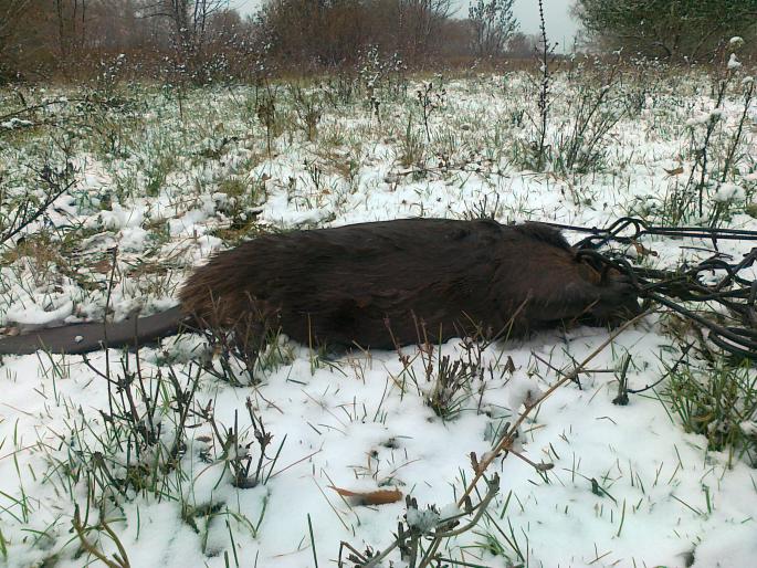 Всем бобра ) поймал сегодня одного под заказ ) Погода прелесть! ...и зайцы и куропатки и куница наследили !