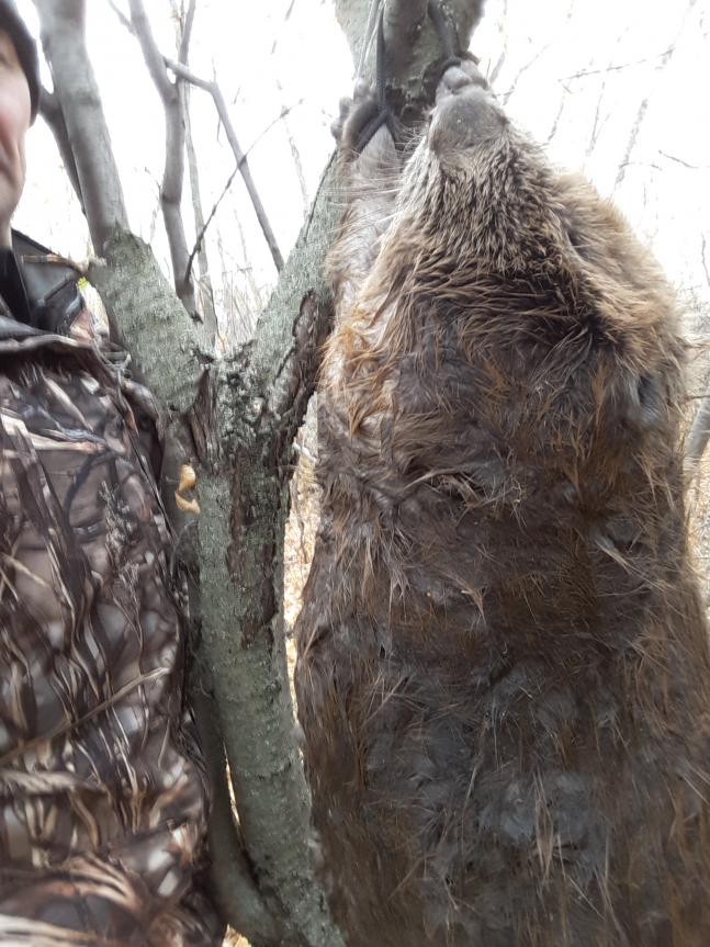 Надев заброды, обследовал берег рядом со "столовой" и прямо от нее под берег нашел два входа. Два капкана переставил туда, третий снял. Уехал до субботы. Вернулся - ноль. Чуть поправил постановку и спать. А ночью первый снегопад, но вы помните... А утром снова бинго! Но опять некрупный, около десятки. После этого капканы все снял, хватит и этого. Немного проредил вредителей. Получил хороший опыт, знания и умения. Сыну также эта тема понравилась: уж как мог и что знал, все ему про бобров рассказал. И объяснил, почему их надо иногда изымать, так как их перенаселение очень вредно. Шкуры солятся (сын потребовал себе шапку!), мясо в морозилке (сейчас дам рецепт), струя висит и сушится в гараже. В общем, первый блин комом не пошел, хотя морально и был готов к "пролету" в первый сезон. З.Ы. Где в ТЛТ или окрестностях шкуры могут выделать? З.Ы.Ы. Надо больше фотать постановку и насторожку, снимать видео. Простите, в следующий год не буду лениться.