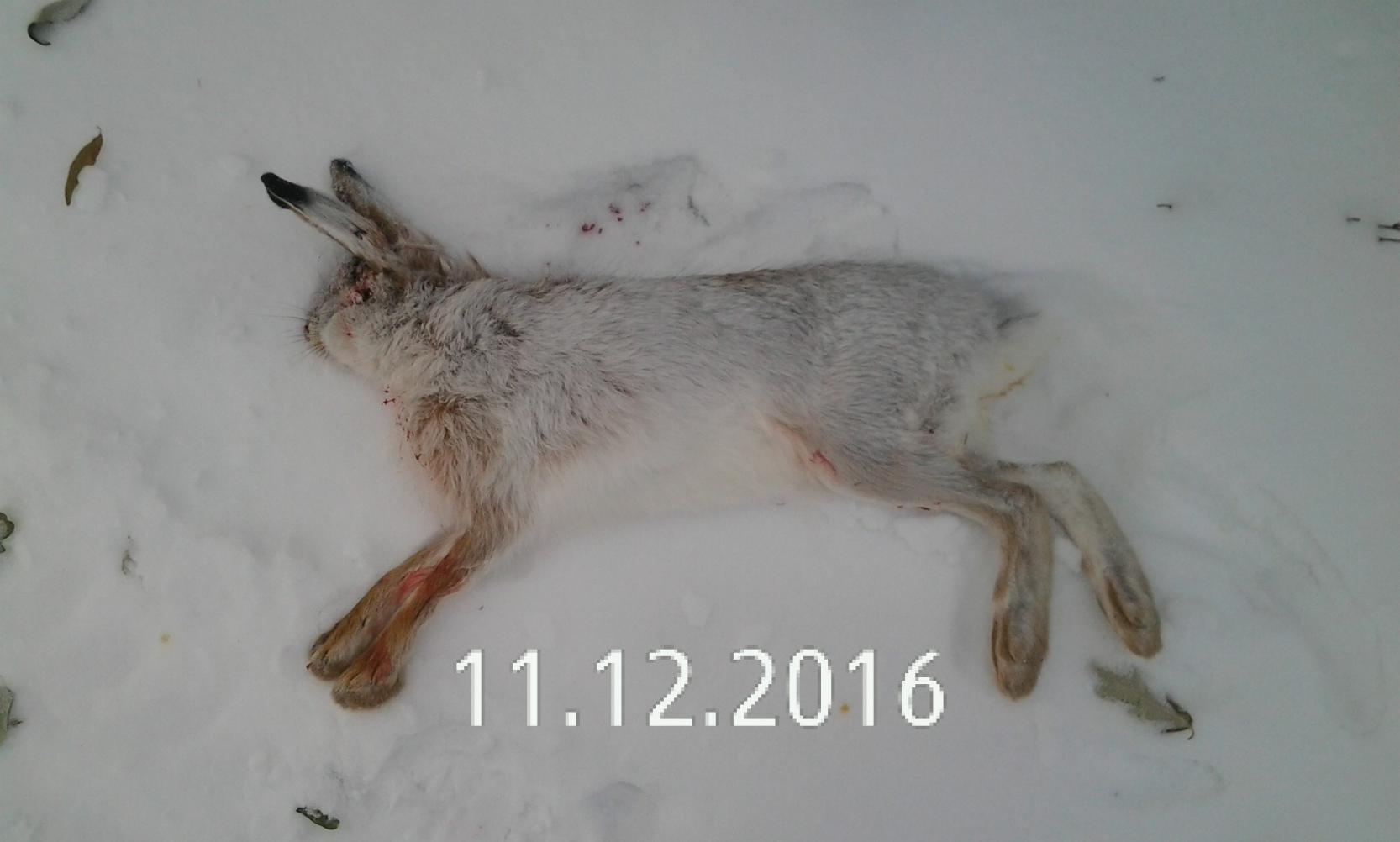 Вчерась прогулялся тоже. Пошёл по длинючему оврагу одной стороной в надежде на следы, но кроме лисьих ничего. Прошёл где-то 5 км и тут замело и свистодуй поднялся. Решил возвращаться обратной стороной оврага и вот, на выходе из него встретил наброды косого. Я, в начале пути, не дошёл до них 15м. С дороге скидка в кусты лоха, проверил, он обратно на дорогу выскочил и под соседний куст. Там и лежал.Я от него бродил в 3 метрах-не поднялся.Не поднялся и тогда, когда удалялся от него. Но...встретились глазами...Бил через кусты, т.к. мне их было бы по быстрому не обежать. 1-0 в мою пользу и быстренько к машине чаем греться!