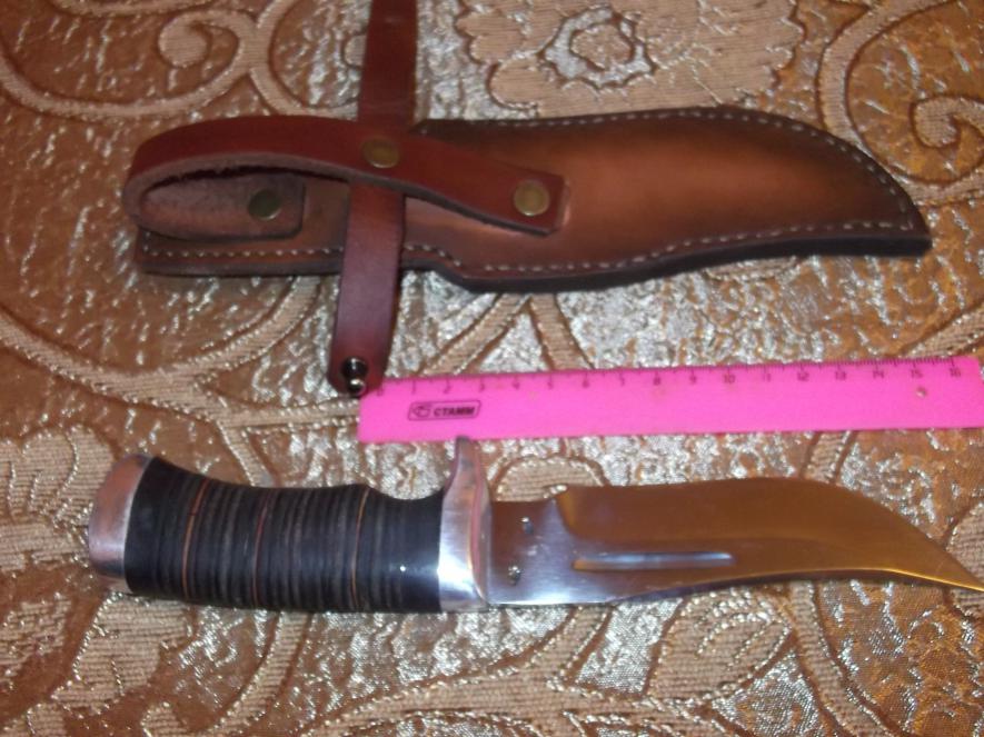 К продаже нож...ранее на форуме продавался (без ножен), к нему добавлены ножны ручной работы + заточен. Рукоять наборная кожа. Ножны сшиты вручную,специально под данный клинок (мастерская Романа Серкова). Сталь-не знаю, но точился с трудом. Мастер (клеймо на клинке), как пояснил предыдущий владелец он не помнит,но достаточно известен. Нож своеобразный, ближе к виду разделочных. Все размеры на фото. Толщина клинка от 3 до 4 мм от острия к рукояти...Причина продажи-приобретен нож (изготовлен) по заказу.... Прошу звонить по тел.+ семь 9два056 один восемнадцать Сергей. Если не беру трубку или сбрасываю-нет возможности разговаривать. Сам перезвоню по возможности. спасибо за понимание. осмотр р-н Владимирской-Коммунистической в Самаре или по-договоренности.