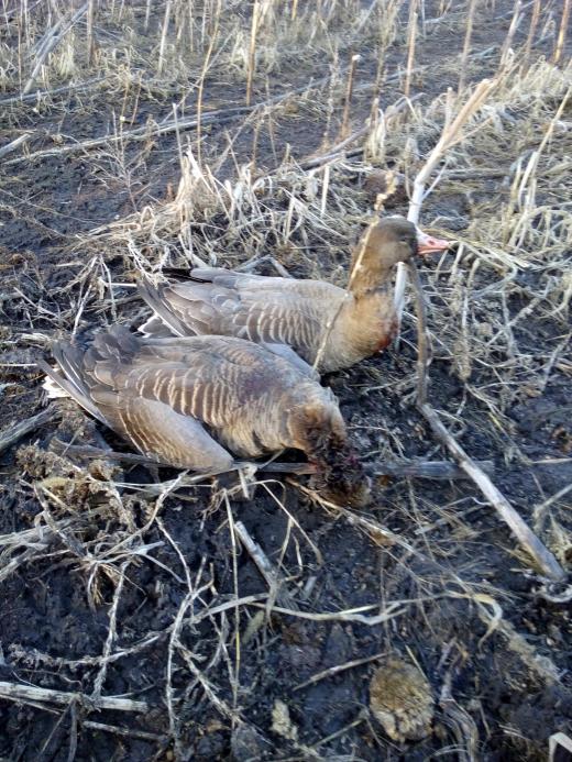 P.S.: когда готовил, боялся, что могу даже и не увидеть настоящих гусей на охоте, всякое же бывает... думал, лишь бы не перегореть, не разочароваться... Но прошлогодняя весенняя охота меня побаловала! С первого выезда я взял двух белолобиков, а двое моих друзей, такие же начинающие, тоже с трофеями - еще белолобик плюс гуменник.