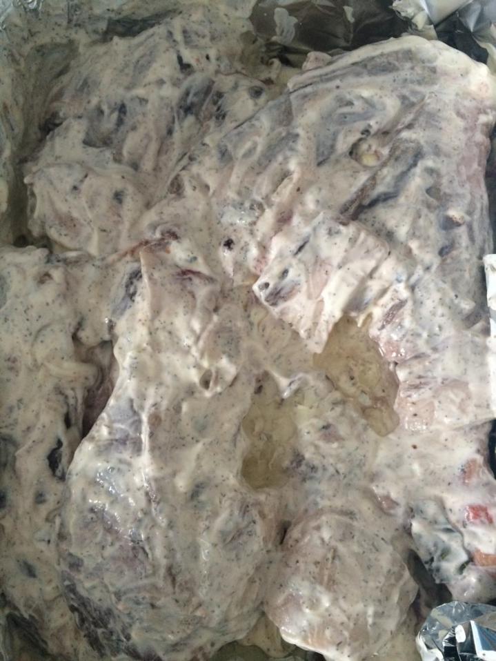 Всем привет. На свою днюху замутил такое блюдо: "Запеченные ноги сеголетка кабана и косули". Делал так: достал, разморозил... Натер солью, душистым перцем и прованскими травами... Через сутки выложил на противень сало свиное кусочками, сверху несколько кусочков, посыпал для кислинки брусникой и клюквой и добавил 50 грамм сухого вина Саперави... Далее сверху обмазал майонезом с чесноком, накрыл фольгой и в духовку на 2 часа при 170 градусах. Очень мягкое и нежное мясо (от кости отходит)... Всем приятного аппетита!