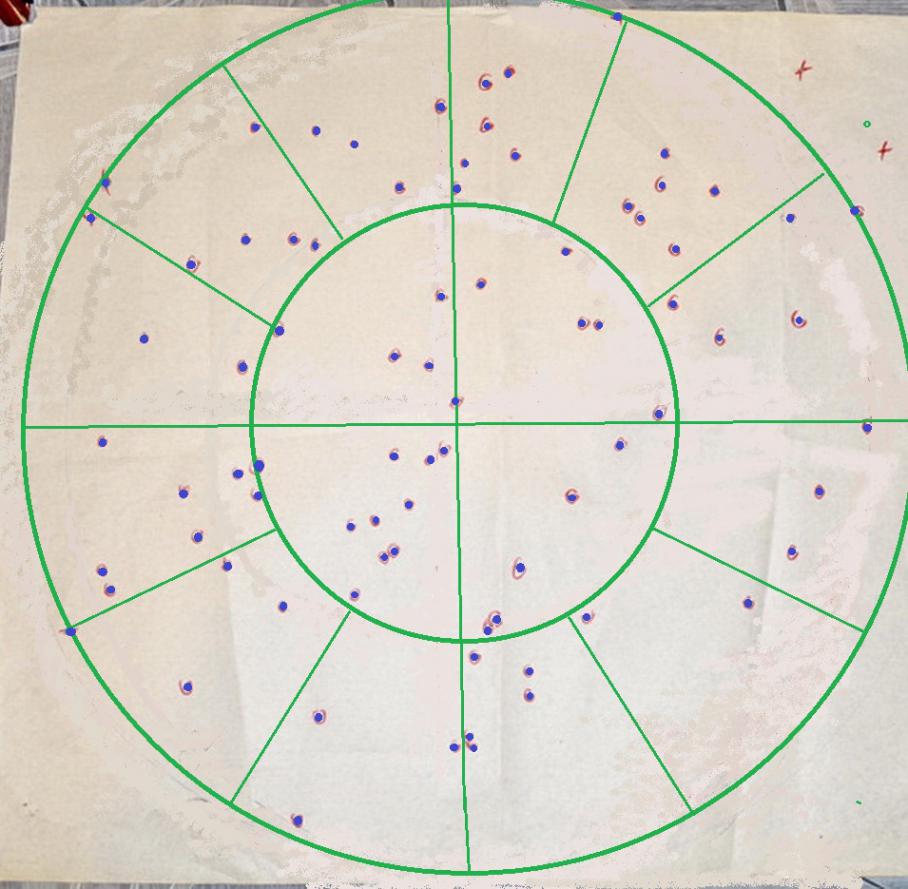 Дробь №1, 34гр шот, порох Драго. 77шт, вышло примерно 87%. 35м, 0,75 дс