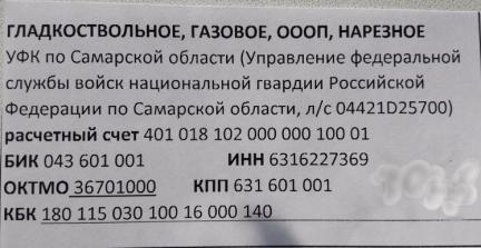 В Вазовской кто то делал за один заход надо уточнить, ну а реквезиты поменялись с нового года с МВД на Росгвардию.