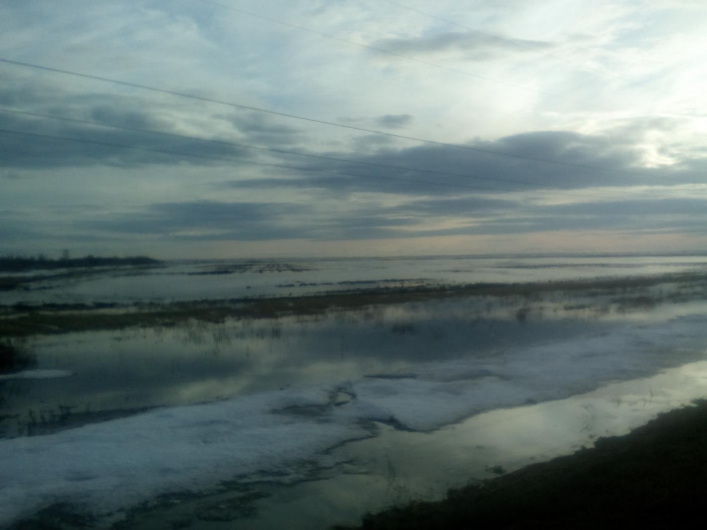 В полях водище.....в некоторых местах и краев не видать.