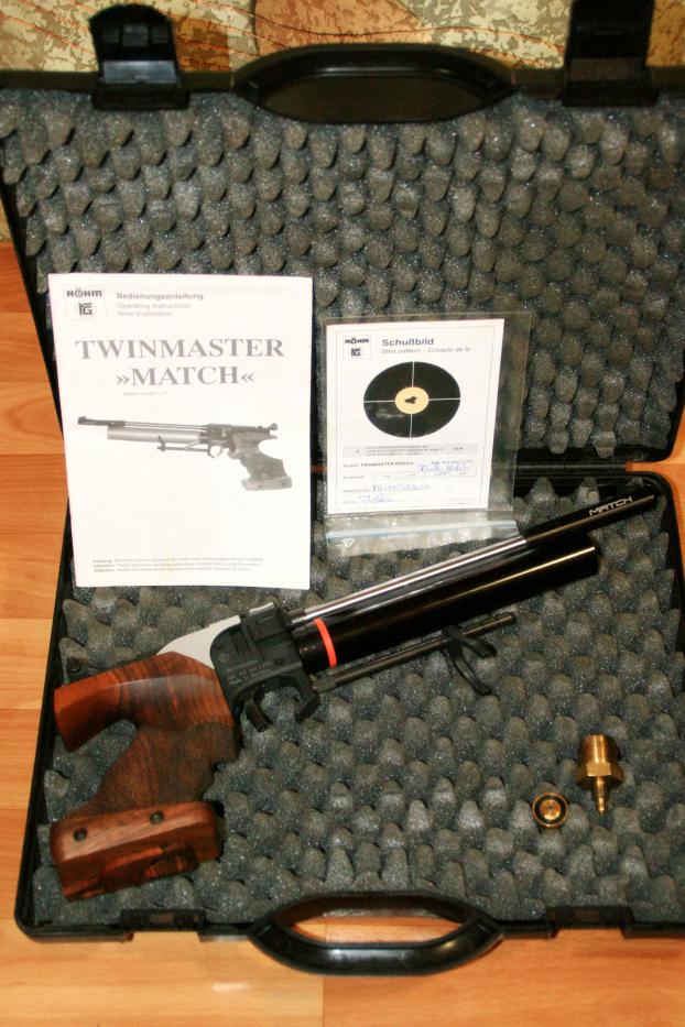 Лот №2- Спортивный PCP пистолет (начального уровня) Rohm Twinmaster Match. Настрел прошлого владельца 2-3 тысячи выстрелов, я еще тысячу за год добавил. В комплекте: пистолет, паспорт, карточка отстрела, переходник и таблетка Кайнына для заправки резервуара от баллона. Цена- 27000 руб.