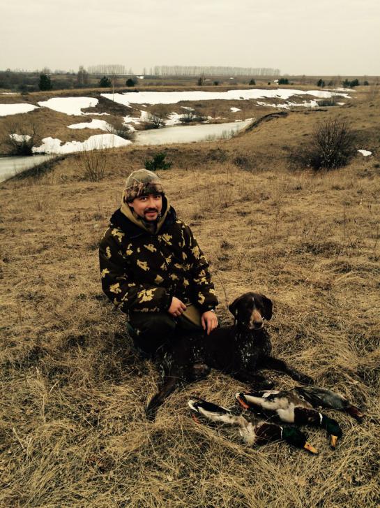 Чуток поохотились с подсадными результаты скромненькие )... Погода не дала ни на тетерева посидеть ни на вальдшнепа постоять . Но все равно довольны.