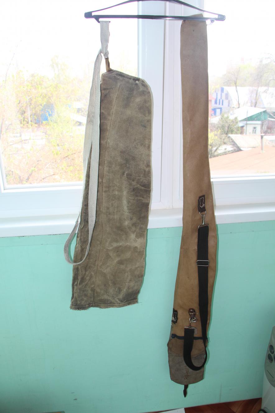4. Светло - зеленый чехол, двухсекционный из плотной ткани (затягивается удавкой и вешается на плечо) - 550р.