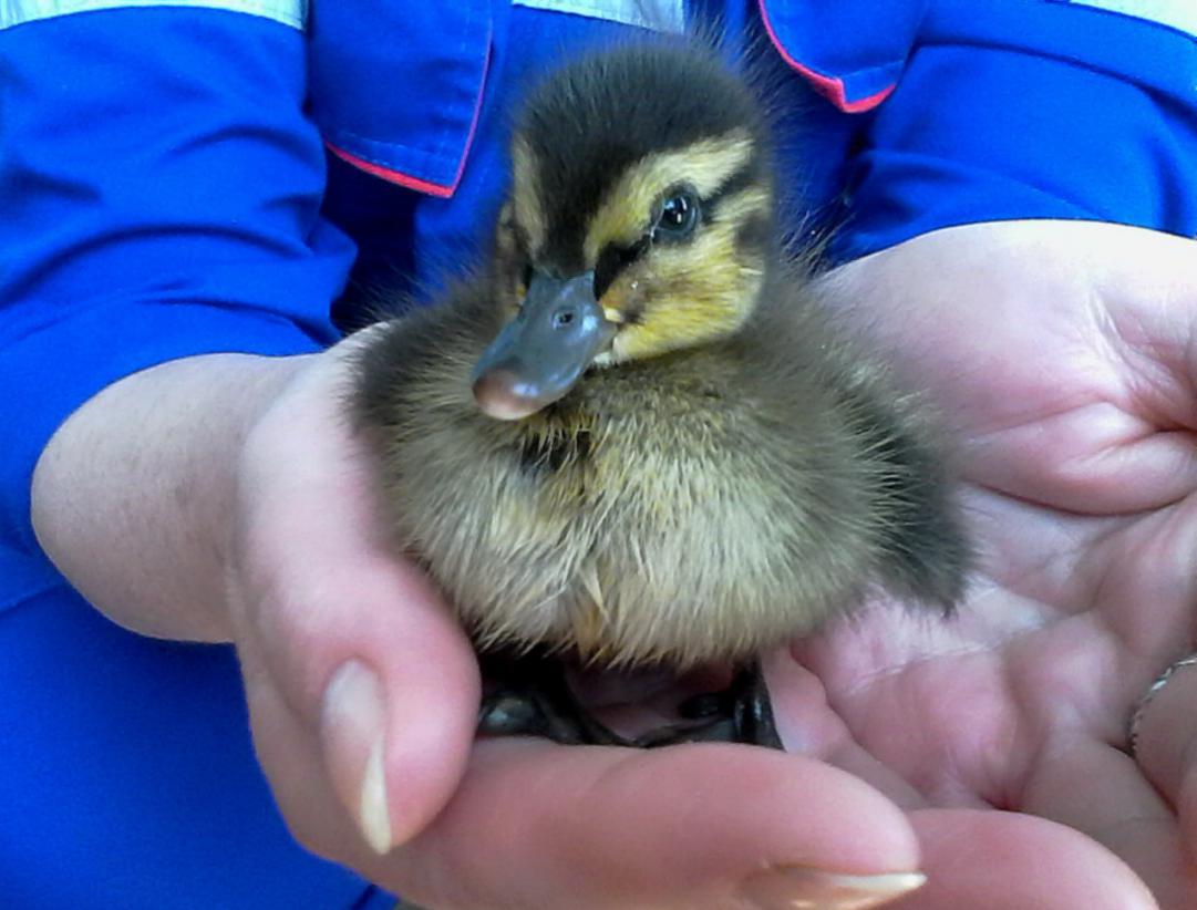 Сегодня утром отбили у ворон одного утенка.)) Основного выводка по близости не было, возможно отбился...