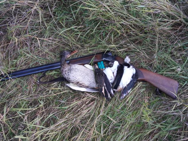А мы вечером поехали с собакой поискать на водоёме подранков. Приезжаем, а там полным-полно охотников,все тоже за уткой приехали. Но никого не подняли-уехали.После них мы пошли по берегу.Всё берега вокруг истоптаны,представляю сколько с открытия охоты там народу перебывало.Пес нашел и выгнал из травы подранка,поплыл за ним, вспугнул с дерева вяхиря.Тот после выстрела тоже оказался в воде. Двоих собака не смог с воды подать,пришлось сплавать два раза.Шли обратно к машине-стойка!Коростель.Влетел из под ног.Отпустил подальше,чтобы не разбить выстрелом.Коростель уже крупный,такое ощущение что пролетный.Тем временем быстро стемнело.На сегодня хватит-пора домой.