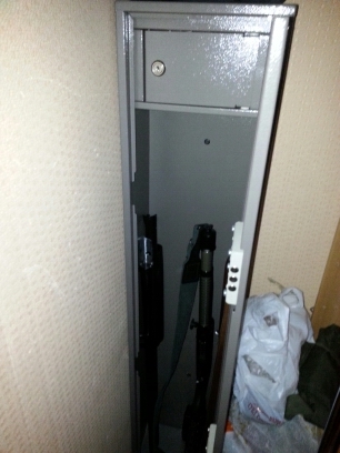 Воробей-3. Внутренние размеры 1284/1083*259*162. Два ствола входят легко, для третьего тоже место есть, - см. фото. Два полноценных замка - не почтовых. Возможность крепления к стене. Два комплекта ключей наличествуют. Не бит - не крашен - в идеале. 10-12 кг весит что-то так. 1,2 мм сталь. Цену вижу в 3000 р. 987 8I7 7O 28