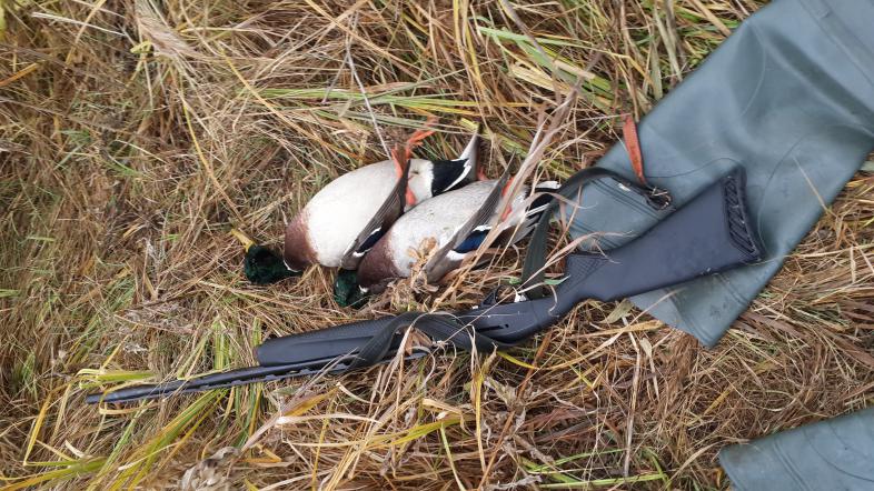 Вчера прогулялся по речке в К-Черкасском ОДОУ. За пять пройденных километров попалась одна стайка в количестве пяти голов, два из которых выбил. Или утки мало или пресинг большой. На прудах утки вообще нет.
