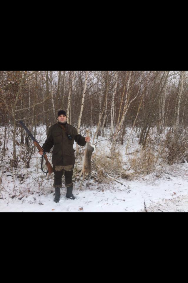 А сегодня очень повезло. В двух о/х взял по зайцу: ОдОУ "Красноармейский" и о/х "Красноармейское". Первый лежал в траве у полевой дороги. Встал в 5 метрах. Я его слышал, но не видел куда он побежал. Думал, что сразу из травы он повернул на право и почесал по дороге. Но заяц пересек дорогу и почесал по пахоте. Стрелял- "чок", "1". Один выстрел. А второго нашел, перейдя ногами из одного угодья в другое, в траве возле посадки. Встал тоже близко и побежал не в посадку, а в поле. Стрелял: "получок", "3". Тоже один выстрел. Вес первого- 5250гр, второй-3100гр.
