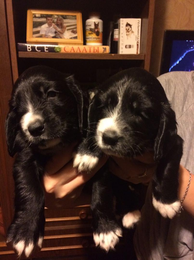9 щенков: 6 кобелей (2 черно-пегих и 4 черных)/3 суки (черно-пегая и 2 черных) Дата рождения — 10.10.2017 Кинологическая организация, спланировавшая вязку (если не плановая указать): СОООиР Место нахождение щенков — г. Саратов. мать АЙНА, 25.03.2012 г.р. , ВПКОС — 5998/17; окрас — рыже-пегий Племенной класс : первый Оценка экстерьера : отлично Титулы: 1 место в ринге сук старшей возрастной группы на Саратовской областной выставке охотничьих собак в 2016, 4 место в ринге сук средней возрастной группы на межрегиональной выставке «Весна Поволжья 2015». ДИПЛОМЫ: IIпер, IIIпер отец ПЧ БАКС 05.06.2012 г.р., ВПКОС — 5751/15; окрас — черный Племенной класс : первый Оценка экстерьера : отлично Титулы: ПОЛЕВОЙ ЧЕМПИОН XII Всероссийских состязаний по полевой и болотно-луговой дичи в Солотче. Призер II-х Ульяновских областных открытых лично-командных межпородных состязаний спаниелей по утке. Дипломы: Iпер, IIу, IIф, 3- IIIпер 89271258222 89042411245 |
