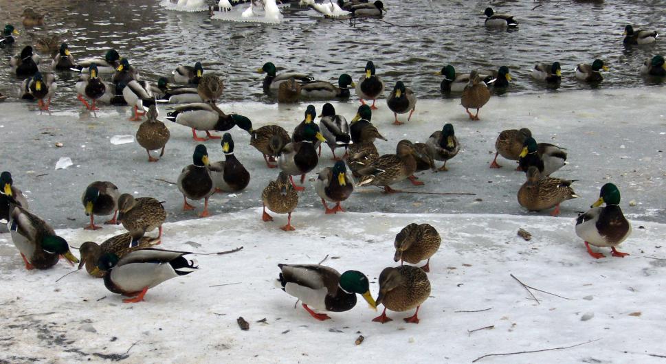 Крякаш как на подбор.))) Покормили, полюбовались))... Когда уходили, подняли партечку куропаток.