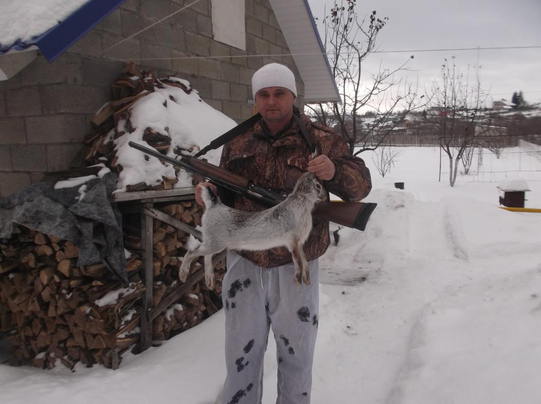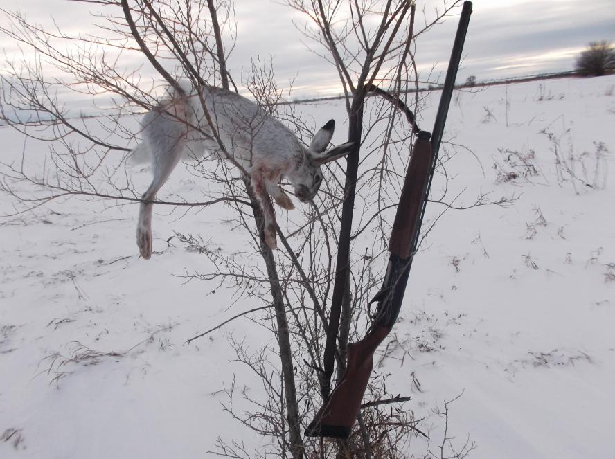 Наконец то и я открылся у себя дома -в Самарской обл., а то только в Ульяновской и везло. А начиналось всё сегодня не очень хорошо. После ночной смены дома сидеть не мог - снег не идёт. Но и решил прошвырнуться по перспективным местам. В районе Нура съехал с трассы, встал на лыжи(первый раз в этом году )и пошёл вдоль посадки в три ряда. Лыжи скользят хорошо ,хотя чувствую что ветер теплеет. Иду .Радуюсь ,что кроме меня сегодня ни кого ещё не было. Но и следочки только от лисы. Заячьих не видно. Прошёл метров 600-700 и вижу едет мне на встречу снежик. Радость пропала сама собой. Понимаю ,что дальше идти нет смысла . Жду когда ко мне подъедут. Хотя бы спрошу поднимался ли заяц за ночь или нет. Но два парня на снегоходе со мной общаться и не думали. Свернули не доезжая до меня метров 100 в поле и до свиданья. Обиделся я на них и пошёл назад к машине. Снег вдруг резко стал липким. Так что к машине я уже подходил пешком. Домой возвращаться как то стрёмно , вроде бы только ушёл. Решил проверить окрестности около Белозёрок. Еду по трассе -охотники чуть ли не на каждом съезде. В одном месте три внедорожника с прицепами под снегоходы. Думаю пипец охоте. Отъехал подальше ,оставил машину на обочине и попёрся пешим по колено в поле. Следов ноль. Делаю круг км.на 5,и возвращаюсь по пахотному полю к машине. Снег пашню сравнял. То провал на 30см то на кочку наступишь. Со стороны- как пьяный в стельку идёшь. То и смори ногу подвернёшь. И вдруг метров за 300 до машины след . Наконец то . Иду троплю. Через глубокий арык да ещё с подъёмом в горку полз на пузе(встать не реально- проваливаешься по яйки).Начались сдвойки ,стройки-потерял. Немного вернулся и вот она скидка. Иду по следу к кустикам ивняка и вдруг боковым зрением с лева вижу движение. Стартанул от меня ,и вижу только его зодницу. Стреляю на вскидку и первым (единичка)попадаю по задней ноге,а он бежит .Вторым (тоже 1) ещё раз попадаю ,он переворачивается ,визжит но опять бежит. Третьим (0)мажу .Четвёртым(0)достаю -останавливается но стоит на ногах. Пятым (1)-всё падает. Первый выстрел был метров на 30 ,последний за 50.Радости полные штаны как не как а первый заяц в сезоне . к стати до машины по прямой было не больше 120-130 метров . а я делал крюк в 5 км. Лёжка была в 30 метрах от трассы. Дошёл до машины ,сделал запись в путёвке и отзвонился жене и довольный поехал домой . Когда дома разделывал тушка была ещё тёплой. Доволен очень.