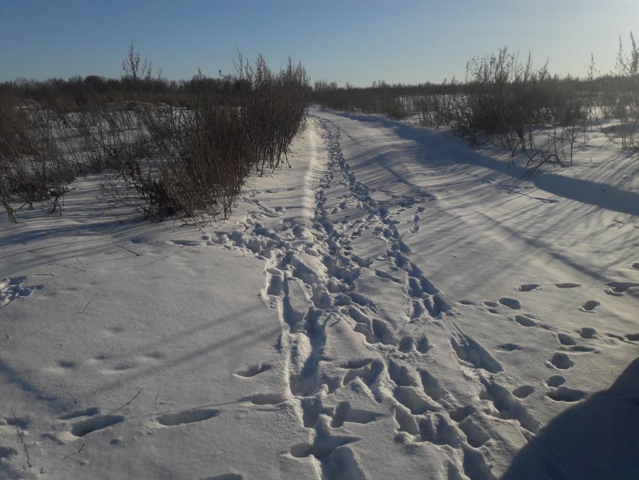 Я сегодня тоже был в полях. След нашёл давольно быстро(минут через 15). Это меня и подвело. Думал что придётся ходить-распутывать. А он вскочил из под первого же финика и в скошенный подсолнух. Дистанция метров 80.Стрелять смысла не было. Поступил как недавно учили на форуме-дал ему спокойно уйти. Сам решил сделать кружок в дальний угол. Потратив на это чуть больше часа и ни чего не найдя решил встать на гонный след. Но тот поднятый мной заяц сделав круг км 2 вернулся почти к месту лёжки перебежал через асфальт ушёл в свои любимые заросли осоки . А там его искать бесполезно. По дороге назад поднял стаю голов 20 куропаток.( и где они были осенью),облизнулся как кот и побрёл к машине. Мороз сегодня был приличный-23 и ветер. Даже в балаклаве морда лица мерзла. И фотик замёрз-хотел лёжку заснять, а только объектив вылез и всё кирдык.
