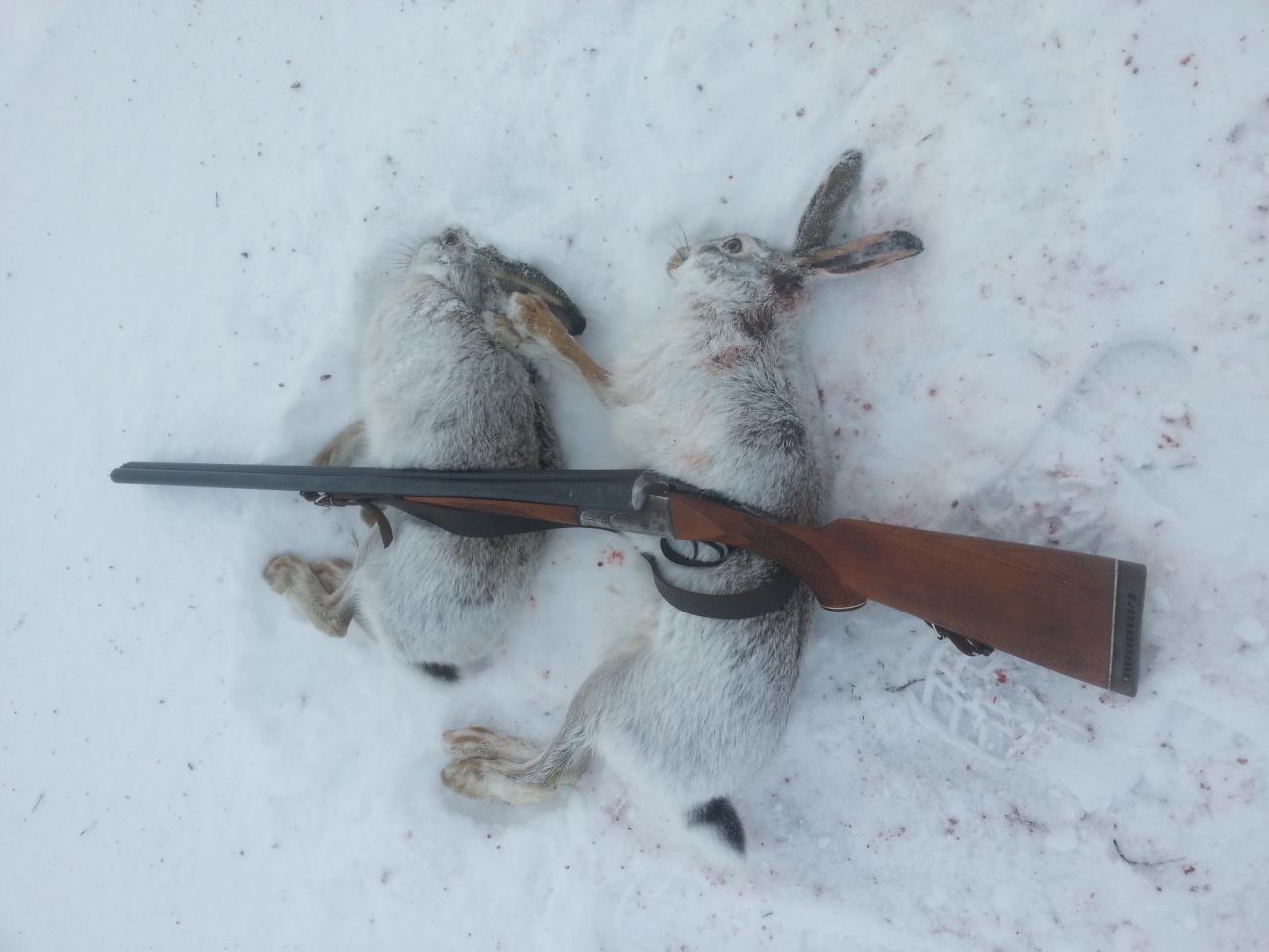 Закрывался сегодня. Следочки все свежие (вчера после снегопада заяц не вставал). Но первого поднял случайно , просто подошёл к арыку, а заяц в 3 метрах как сиганёт неожиданно в ивняк .Успел только дважды ему в догонку через ветки отсалютовать. Мимо. А второго тропил 2 часа. Но зай поднялся метров за 50. Два выстрела в молоко. Так что генофонд не пострадал. Проходил по гонному следу по 100-150 метров, в обоих случаях признаков попаданий нет. Это хорошо-подранков нет . Теперь пускай активно женятся и размножаются на радость охотникам. Впереди гусь , но это уже другая история.
