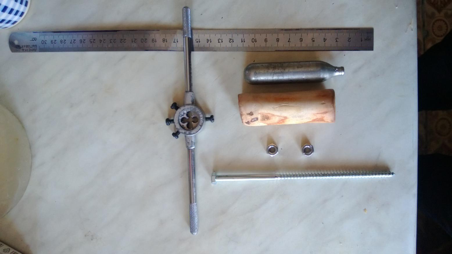 1 баллончик от пневматики 2 винт-шуруп х150мм 3 две гайки М6 4 кусок деревяшки. У винта отпилил голову и нарезал резьбу М6 В боку баллончика просверлил отверстие сверлом 4,5 и нарезал резьбу М6. Напильником пропилил дыру для зачёрпывания свинца. В деревяшке просверлил отверстие под саморез. Собрал всё в кучу. Лить в пулелейку стало удобнее. Последний раз редактировалось авас; 22.02.2019 в 14:20. |