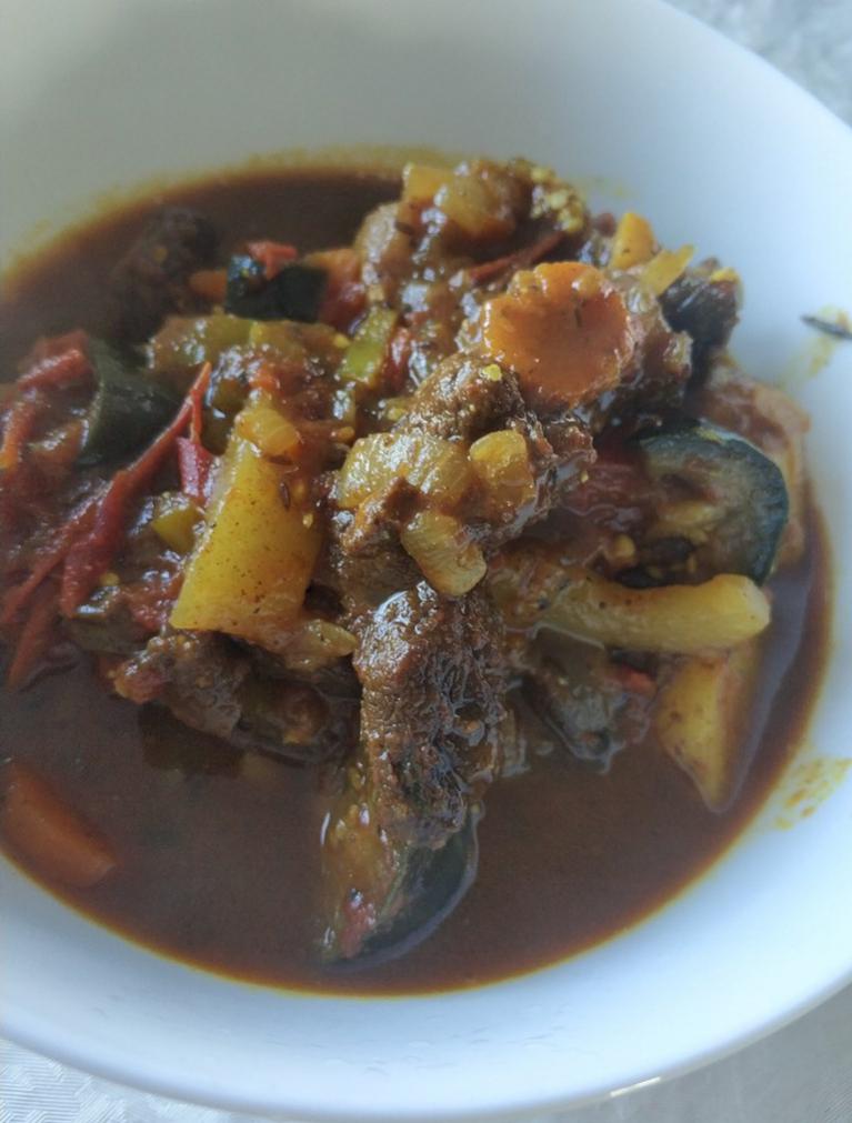 Сезон не за горами... А сейчас пора витаминов. Товарищ угостил свежедобытым козликом и я его приготовил так: мясо обжарил (перец, соль, куркума, зира, лавровый лист), добавил воды 200 грамм и стал по очереди, минут через 5,10 добавлять овощи - чеснок, лук, морковь, помидор, баклажан, кабачок, молодой картофель, болгарский перец, острый перец (много не добавлять, достаточно трети стручка, а то и меньше). Ум отъешь...)) Приятного аппетита.