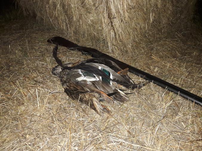 Сегодня в 18-00.Поднял пять крякашей . Первый выстрел - первый падает. По остальным стрелять не стал, всё внимание куда падает сбитая птица. Подбираю и домой, щипать пока не стемнело.