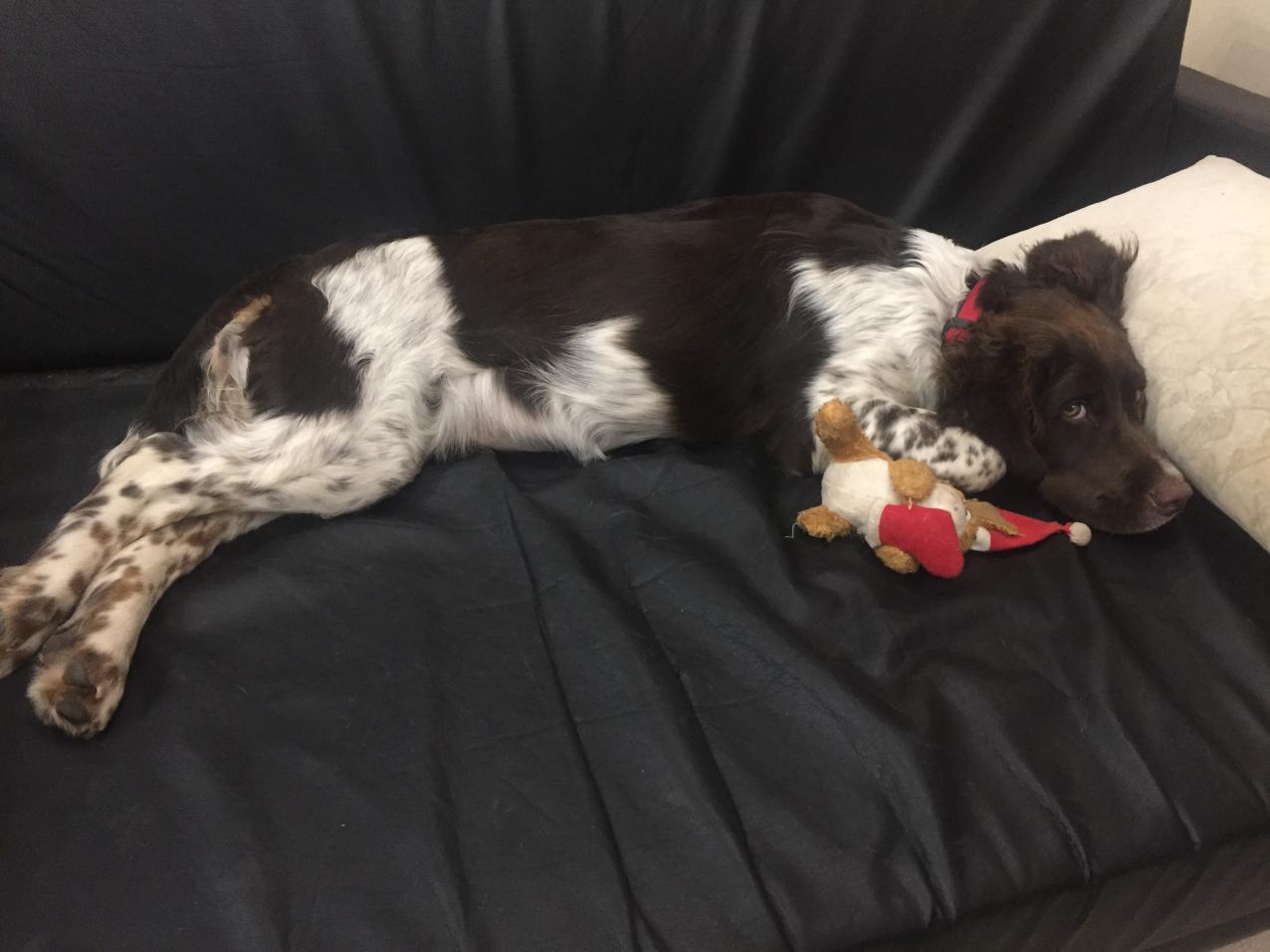 Рейси все еще ждет своего хозяина. Освоила все служебные команды, отрабатываем "подай", пока в игровой форме. |