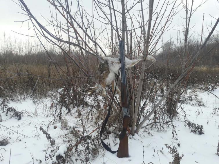 Солнце, штиль, морозец. Кто не ходил - советую завтра. Прям день, что запоминается в жизни. Уже пора и лыжи брать - ногами, местами, тяжеловато. Зайца много, на всех желающих достаточно, но ленивый: из посадки в зелень сходит покушать и в посадке спит. Наш счёт 1:0 в пользу пушистиков, брат прошёл вперёд Степан пропустил и по тихому стал уходить, я его увидел за кустами, стрелял, но не попал. Хороший совет - оглядываться. С первым днём зимы, Товарищи!