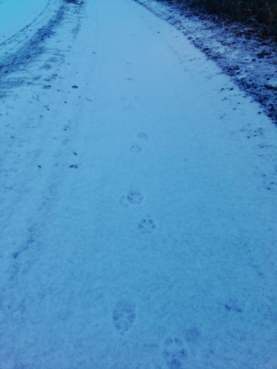 Выйдя из авто и вот первый след на дороге.