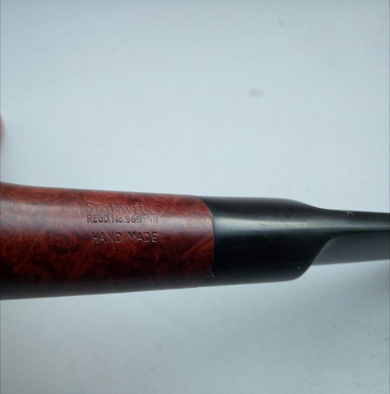 4. Трубка курительная Stanwell Hand Made Regd #969-48. Дания, лимитированная серия. Эстейтовая, предобкуренная. Чаша бриар, мундштук эбонит. Общая длина 15 см., высота чаши 6 см., глубина чаши 5 см., диаметр 2 см. Вес трубки 55 грамм. Покупал за 8000. Ещё брал одну Peterson, Ирландия ей и пользуюсь. Эта лежит без эксплуатации. Цена: 4000 рублей, небольшой торг.