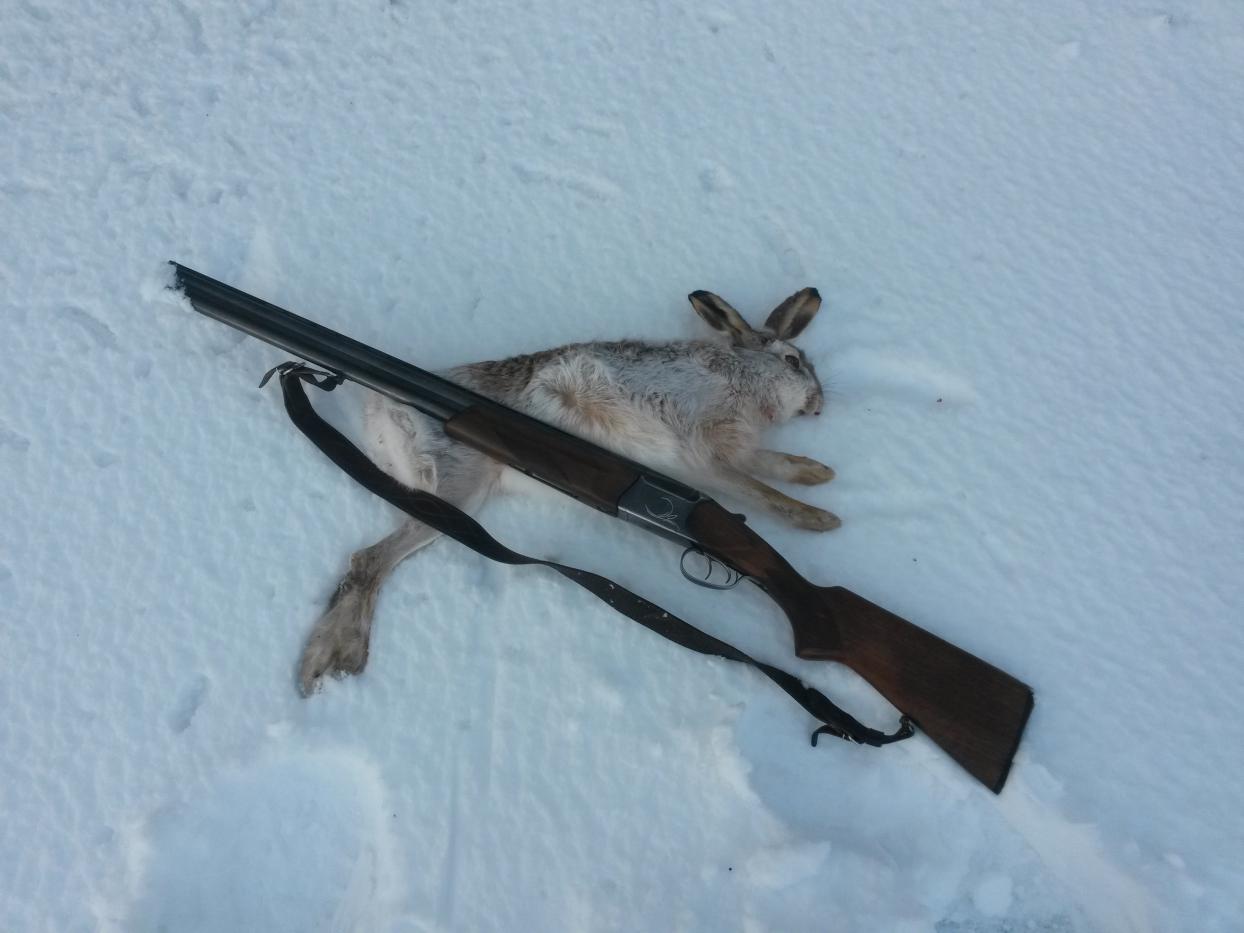 Вчера был выезд, пять зайцев видели, стреляли по одному, но на предельной дистанции и он ускакал целый. Первый раз видел как два зайца встают в одном месте и практически сразу. Хорошая охота была!