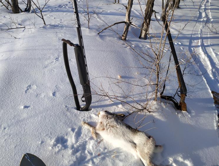 Прогулялись в вс 10.02 подняли 4 зайца, погоняли 3-х, так как 4-й поднялся и ушел между нами и увидели след только на обратном ходу к машине. взяли одного. Осталось немного до закрытия. Всех с полем!